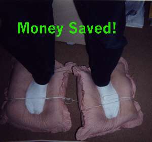 If you've worn a hole in your shoe simply tie a pair of cushions to your feet. You'll barely notice the difference and they're actually more comfortable. |