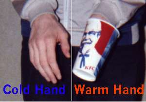Use soft drink cups as convieniently shaped gloves for added cosy warmth. The ones available at many 'fast-food' restuarants are ideal. If they so big that they drop of then simply drip candle wax around the insides untill they reach the correct size. |